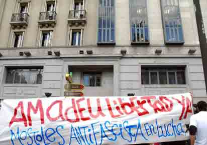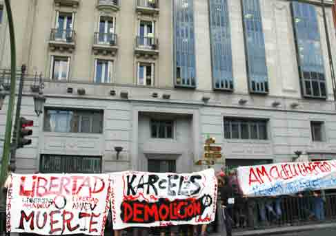 | salud compañerxs: Sobre las 18h de la pasada tarde del día 5 de septiembre y frente a la Dirección General de Instituciones Penitenciarias, comienzan a llegar lxs primerxs solidarixs. serían las 19h cuando el número de asistentes desborda todas las previsiones pudiendo llegar a ser más de 300 personas, todo un acontecimiento en madrid tras las vacaciones de verano. El despliegue policial es tremendo, como siempre en madrid, pero no logran amedrentar a las casi 500 personas que pasadas las 20h hay frente a la sede de la DGIP. En un ambiente muy combativo se entonaron canciones de apoyo para Amadeu Casellas, gritos de rabia y lucha que seguramente desagradarían a más de unx pero que hoy, mas que nunca, resultan del todo necesarios. Es de señalar la gran cantidad de gentes de muy diferente edades que se dieron cita en la tarde de hoy en madrid, alegria de ver a personas que en otras epocas militanban en movimientos de apoyo a Gracias a todos y todas las asistentes, un gran saludo anárquico para Amadeu Casellas !!! Muerte al estado y que viva la Anarquia !!! CNA Agrupacion de Madrid
