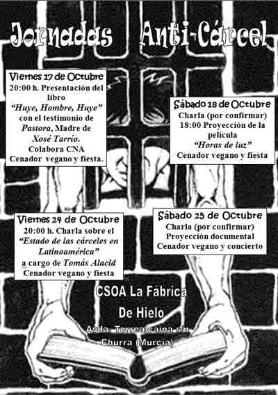 | Los proximos dias 17,18,25 y 25 vamos a celebrar en el centro social okupado y autogestionado La Fabrika de Hielo las 1ª Jornadas anticarcelarias. |