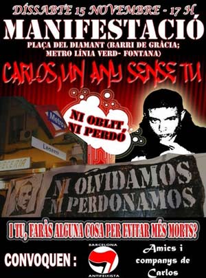 Manifestación: 1 any sense tu. 15 de Noviembre a las 17.00h en la Plaza del Diamant en Gràcia (Barcelona).
