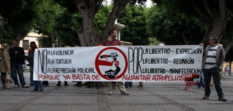 Cerca de un centenar de personas acudieron a la concentración mostrando que no estamos dispuestos a bajar la cabeza y aceptar resignados que se inculquen reiteradamente derechos fundamentales como son la libertad de expresión y la libertad de manifestación. No vamos a aceptar que un policía, por el sólo hecho de llevar un uniforme, esté por encima de la propia ley que se supone debe proteger, pudiendo golpear, torturar, humillar y mantener desaparecida a una persona durante horas como si hubiéramos vuelto a épocas pasadas de nuestra historia más reciente, sobre todo cuando esos actos por su reiteración, se están convirtiendo en una práctica común a lo largo de todo el Estado español, amparados por las instituciones públicas que, en vez de perseguir estas prácticas represivas, amparan y protegen a los infractores, criminalizando a las víctimas de tales actos de brutalidad.