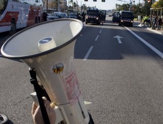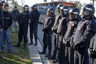 14.05: Diagonal. Los mossos han decidido acabar con la protesta y se han acercado al grupo de estudiantes, han levantado del suelo violentamente a muchxs de ellxs, y han agredido a varias personas. Les han sacado violentamente de la carretera y ahora mismo están acordonados por los mossos entre el tranvía y la facultad de químicas. El tráfico ha sido restablecido. Lxs estudiantes siguen gritando contra Bolonia. La marcha ha seguido por el interior del campus, una vez impedida la protesta en la calle.