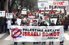 En Iruñea, Askapena ha llamado a manifestarse bajo el lema "Palestina askatu, Israeli boikot". Unas 3.500 personas han acudido a la antigua estación de autobuses para denunciar la agresión sionista contra Palestina y hacer un llamamiento al boicot contra Israel; y la manifestación ha concluido en la Plaza del Castillo con la lectura de un comunicado. Esta movilización ha contado con el apoyo del sindicato LAB.