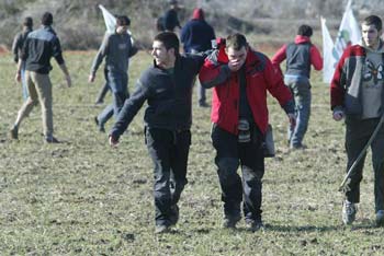 Unas mil personas han resistido en las obras y cuando han iniciado el camino de vuelta al pueblo la Ertzaintza ha vuelto a cargar contra los manifestantes, provocando más heridas y contusiones. La gente se ha refugiado en la sociedd Bolatoki, donde han permanecido rodeados por fuerzas de la Ertzaintza, que parecían dispuestas a romper los cristales de las ventanas. Cuando los manifestantes han abierto una ventana para intentar hablar, un ertzaina ha entrado en la sociedad. En ese momento los que se refuegiaban en la misma han optado por abrir la puerta principal. La Ertzaintza ha señalado ha varias de las personas refugiadas en la sociedad y se han producido nuevas identificaciones.