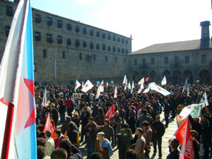 Al final del trayecto, después de recorrer el admirable casco histórico de Compostela, en las mismas escaleras de la plaza que simbolizan la línea divisoria entre la Quintana de los muertos y la de los vivos, fue leído un manifiesto consensuado por la totalidad de las asociaciones convocantes de la movilización. En él se incidía en las nefastas políticas ambientales que devastan los recursos naturales de Galiza y alimentan una orden social injuso e insustenible.