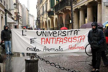 Las organizaciones de ultra-derecha Forza Nuova, Destra Universitaria y Lotta Studentesca habian convocado para ayer, dia 10, una manifestación en Padova en recuerdo a las foibe (Las foibe son simas en torno a la ciudad norteña de Trieste y en la frontera nordeste con la ex Yugoslavia, en las que fueron enterrados los cuerpos de italianos muertos a manos de los partisanos del Partido Comunista de Yugoslavia). Activistas de Onda Anomala y de los centros sociales convocaron a su vez un acto antifascista, siendo este más númeroso que el de los colectivos de ultra-derecha. La policía cargó contra l@s compañer@s y un joven fue detenido por agentes de paisano.