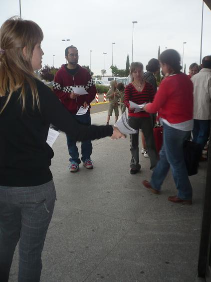En el acto de hoy pudimos llegar a un buen número de usuarios y viajeros en general, repartiendo 500 octavillas y conversando con ellos sobre la situación laboral en esta y otras empresas, y también comprobando como la relación de esta empresa con sus usuarios también deja mucho que desear.