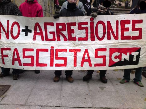 El Sindicato de Oficios Varios CNT-AIT de Salamanca, recordó a los ciudadanos salmantinos la presencia de estos individuos en la ciudad e hizo un llamamiento a los vecinos para fomentar la organización contra las agresiones fascistas.