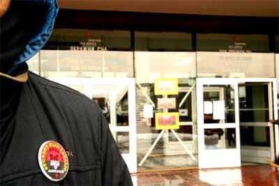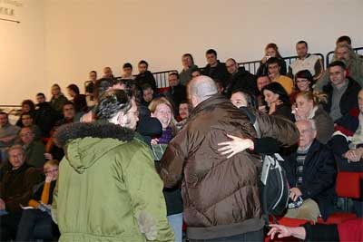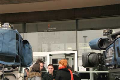 Para nosotros era de vital importancia hacer presión en el interior de estos, pues era donde se creaba más tensión y desobediencia al abusivo proceso. Cabe destacar que Serbia es en la actualidad un férreo estado fascista por tanta escaramuza de naciones, guerras y que todavía no ha levantado cabeza de los bombardeos, aún visibles en algunos edificios, de los noventa. Esto muy reducidamente explicado, ha hecho que aflore lo peor de los totalitarismos ya mencionado. En Serbia no se puede reivindicar nada y tampoco hacer propaganda y menos aun poner pancartas, etc. Comentamos esto para que os hagáis una idea de porqué en las imágenes no aparece nada que haga imaginar que es una concentración.