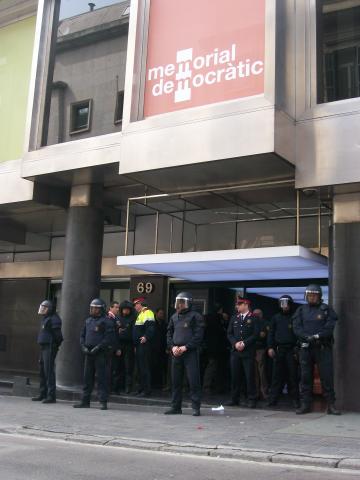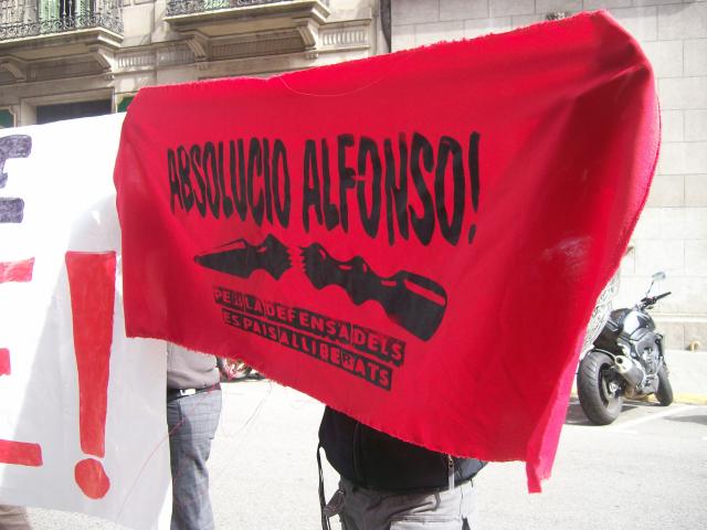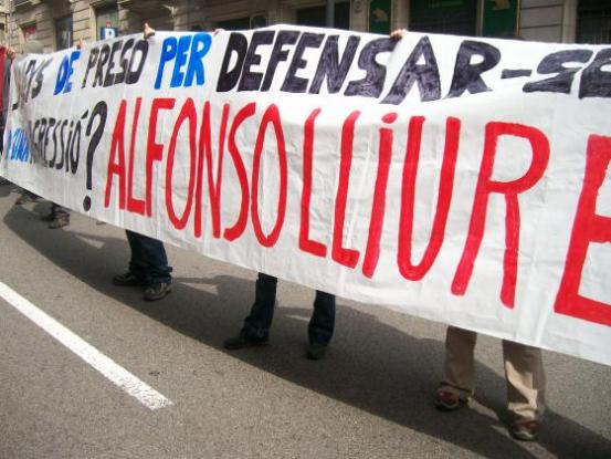 Avui dissabte, al voltant de les 12 del migdia, unes 50 persones s'han concentrat davant de l'edifici del número 69 de Via Laietana, on es inaugurava avui l'Espai Memorial Democràtic i on es trobava José Montilla, president de la Generalitat, i Joan Saura, Conseller d'Interior. Així es denunciava, davant les persones i institucions que defensen aquest sistema, que les coses no han canviat tant i que s'anava a empresonar durant 3 anys a Alfons, acusat de defensar-se en 2007 de l'agressió d'un policia armat amb un Kubotan, arma il·legal. El 12 d'aquest mes va arribar la notificació de la seva entrada a la presó per a 10 dies després des d'aquesta data.