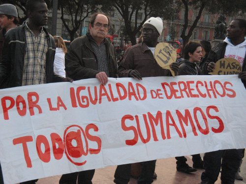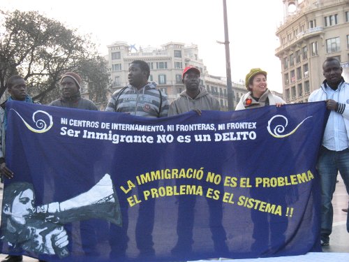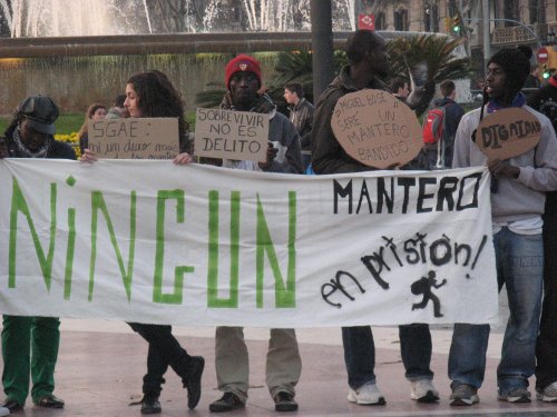 A partir de las 18hs de la tarde ha dado comienzo esta jornada de lucha por la despenalización del top manta promovida por personas que trabajan en el "top manta". Se ha creado un círculo entre todas las personas asistentes, y muchas personas partaban pancartas en las que se podían leer consignas a favor de lxs manterxs.