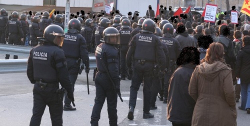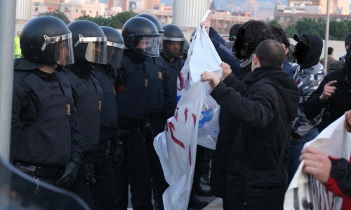 Sobre les 17:45 la manifestació va començar en direcció a un dels accesos de l´hotel, es contabilitzen al voltant de 300 persones, durant el recorregut es van tirar petards, bengales i coets. Només arribar a la rampa per la que accedeixen els cotxes al aparcament del hotel, un cordó de mossos va impidir-ne el pas.