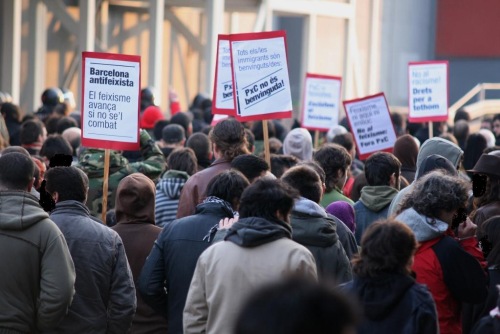 El passat dia 13 de març, a les 18h, el partit xenòfob i feixista Plataforma per Catalunya (PxC) presentaba el seu programa electoral a l´Hotel Barceló Sants de Barcelona, situat just a sobre de la estació de Sants i de difícil accès per l´elevació de l´entrada. Per a la ocasió van assistir líders de l´extrema dreta europea, partits com el Vlaams Belang flamenc o la Lega Nord italiana. A les 17h, a la plaça Joan Peiró, situada en front de l´hotel, es concentraven al voltant de 100 persones en repulsa. L´acte, convocat per diferents col•lectius antifeixistes i d'inmigrants, tenia com a fi impedir la presentació de PxC i denunciar el perill que aquests tipus de partits impliquen. Cal remarcar la presència de companyes immigrants de Vic (població en la que la implantació de PxC suposa ja una realitat) que es vàren sumar a la protesta.